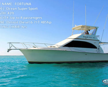 Our fishing boats βFortunaβ 42 feet, Ocean Super Sport model motor yacht and best fishing boat Fortuna fishing charterβSherlock IIβ 39 feet and βGone Dogβ 37 feet and βCanaβ 32 feet are made for true Fishermen and ready for best deep sea fishing boats and all inclusive fishing trips!