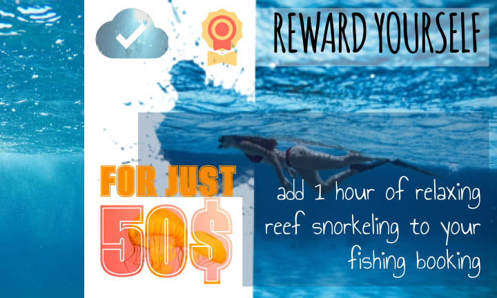 Itβs got very comfortable flybridge, music speakers, bimini protects from the sun and of course thereβs a swimming ladder so you can enjoy relaxing snorkΠ΅ling after fishing. We have regular masks and other snorkeling equipments. See our price for fishing and party boat.