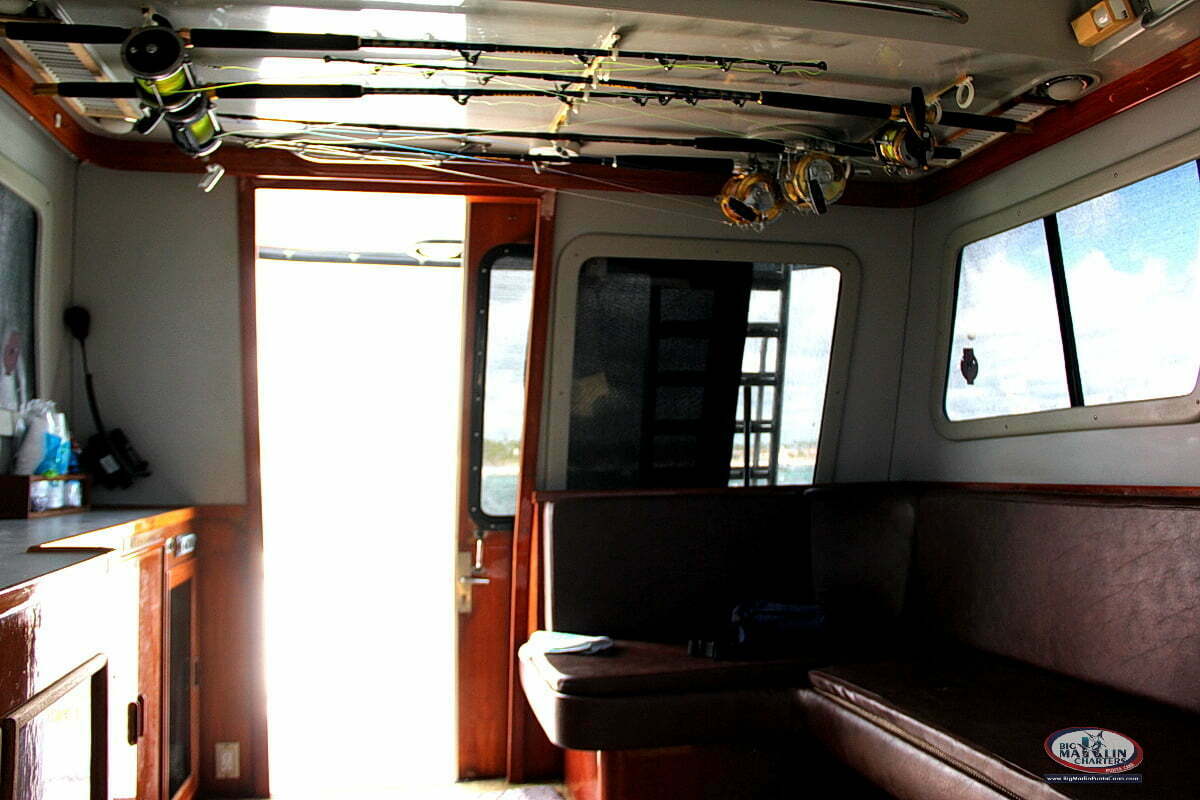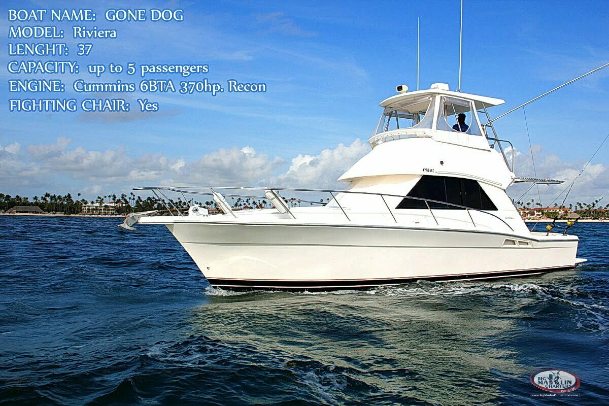 Our new boat “Gone Dog” 37 feet long and very very comfortable for fishing and relaxing can carry up to 5 guests. Leather couches, TV, spacious bathroom with the shower. Great flybridge with ocean vew couches. Very wide swimm platform with ladder for snorkeling after fishing. Two cabins with nice qeen size bed master cabin.