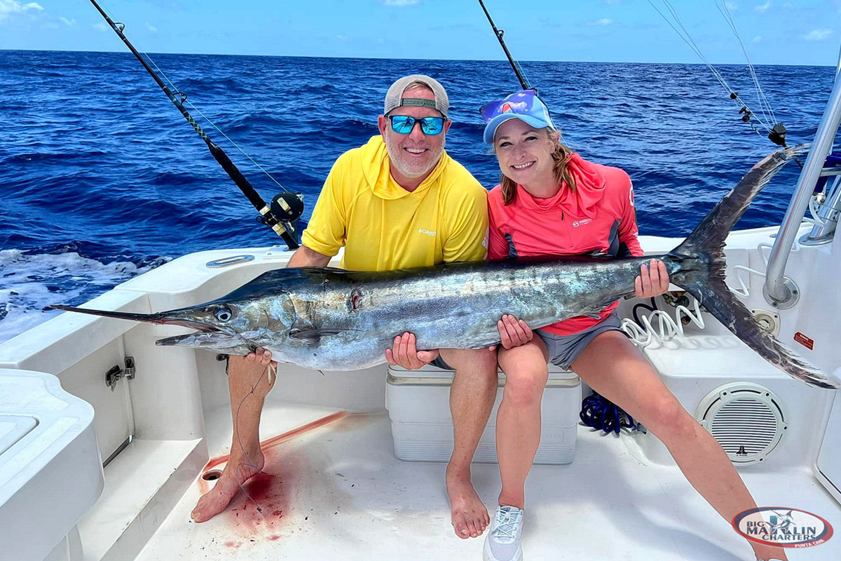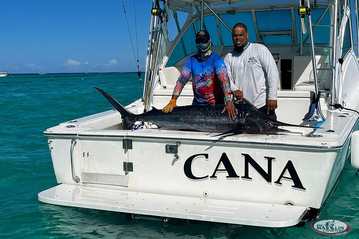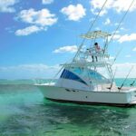 Fishing boat “Cana” is 32′ long, with maximum capacity of 4 pax ideal for long term fishing charters trips and you will have lots of space on the boat still! There is a spacious luxurious cabin with white leather couches, the bar, shower and toilet. Fighting chair and trasmom ladder for snorkeling.