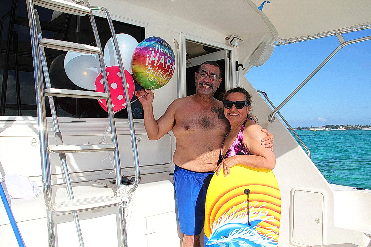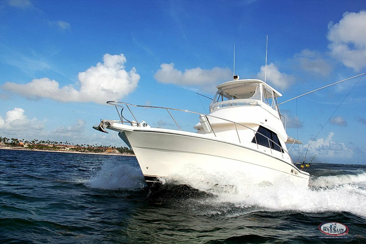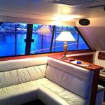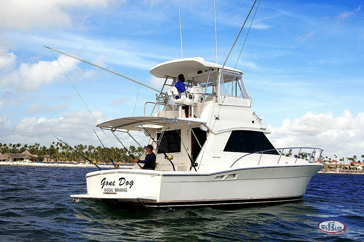 Fishing boat “Gone Dog” is 37 feet in length, Riviera Yacht inc” from Australia convertible model, and can accommodate up to 5 pax for fishing and up to 10 pax for party boat . It has one cabin, a very cozy cabin with beige leather sofas, a toilet and shower, a comfortable flybridge with couches,  TV and bluetooth  marine radio and bimini,  fighting chair on the deck and one fish box. Included a transom ladder for snorkeling after fishing.